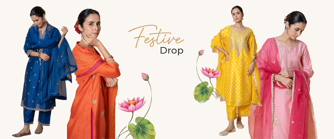 Coral Sunset Gota Patti Orange Chanderi Suit Set